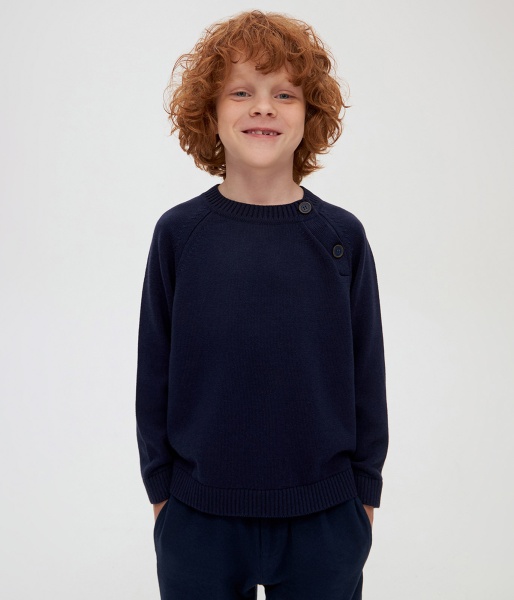 Вязаный идеальный джемпер, который никогда не выйдет из моды. База любого гардероба. Крупная вязка, актуальный крой, 100% хлопок в составе - это незаменимая вещь, которую ребенок будет носить круглый год. Приятный к телу, не сковывающий движений, он обязательно понравится вашему сыну. У джемпера есть функциональные пуговицы на плече для удобства детей.