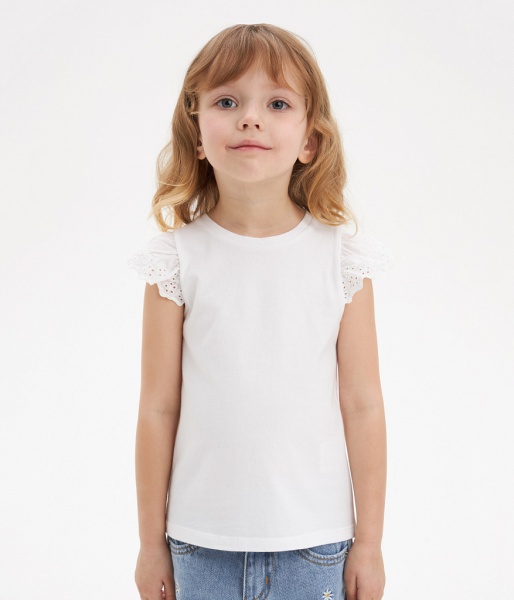 Однотонная базовая майка с круглым вырезом и шитьем на рукавах.