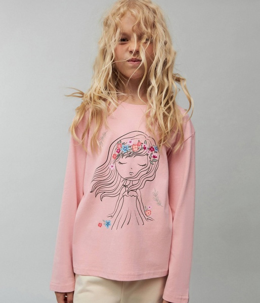 Лонгслив с принтом - это идеальный выбор для девочек. Футболка с длинным рукавом из мягкого трикотажа с легким тактильным эффектом велюра. Этот лонгслив изготовлен из 100% хлопка, что обеспечивает комфорт и долгую службу.