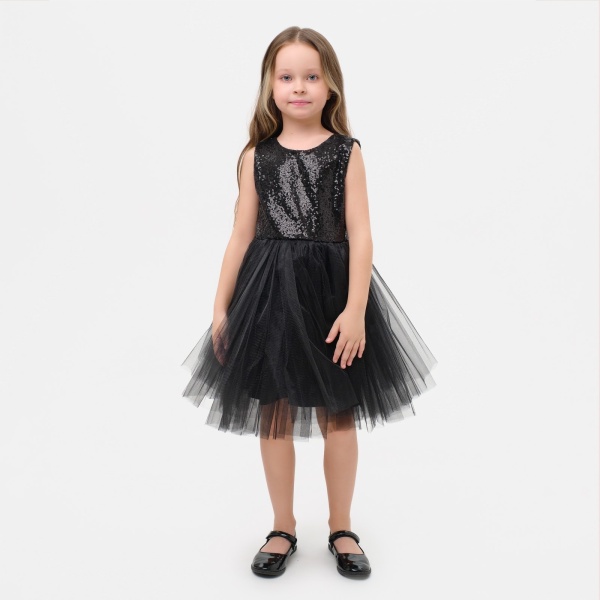 Платье детское с пайетками выполнено в стильном черном цвете и станет отличным выбором для маленьких модниц. Оно идеально подходит для празднования особых событий, но также отлично смотрится в повседневной жизни. Изюминкой этого платья являются пайетки, которые придают ему блестящий и праздничный вид, позволяя деткам чувствовать себя настоящими принцессами.