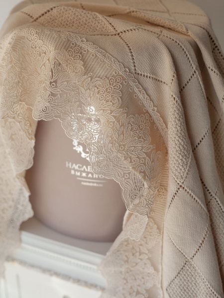 Связано с любовью к детям и природе! Вязаная коллекция из органического хлопка от Швейной Мануфактуры НаследникЪ Выжанова. Вязаный плед, декорированный нежным кружевом - это то, что вы так долго искали! Изысканный и невероятно красивый! Идеальный вариант для выписки малыша из роддома. В дальнейшем Вы сможете использовать такой плед, как плед для прогулок, с малышом или хранить как семейную реликвию. Также плед можно использовать как подстилку или как накидку при кормлении. Не знаете что подарить новоиспеченным родителям? Подарите такой плед!
